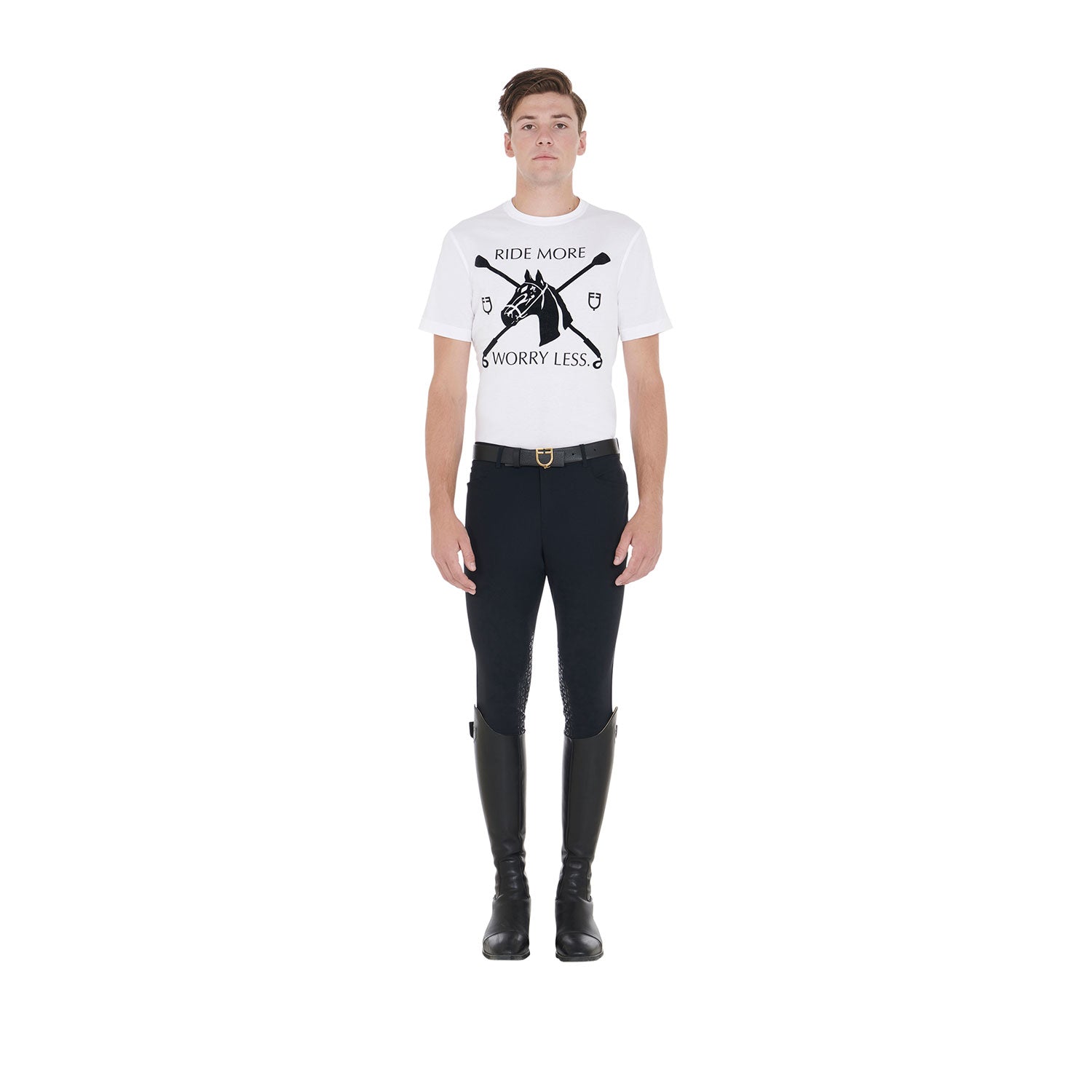 Men's slim fit half-sleeved t-shirt with equestrian print in soft cotton, practical and comfortable for everyday use.