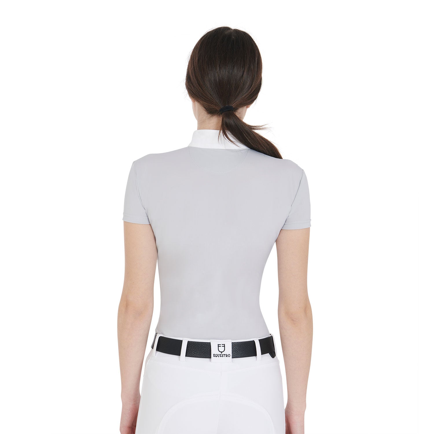 Equestro Women's Short-Sleeved Slim Fit Competition Polo Shirt - Grey/White